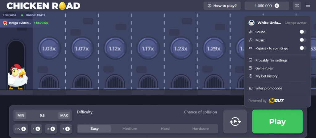 Play Games: Tap « Play » to start your chicken game adventure. To take new steps, press the « Go » button. Your multiplier grows for every successful step you take, and you may cash out anytime to exit the round.